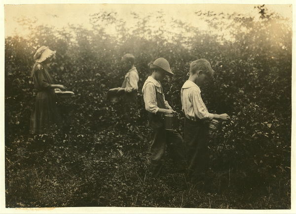 The Newkirk family in Clark County, Kentucky also needed assistance from their children. Newkirk children picking blackberries. Father, Hildred Newkirk. Willie, 15 years, Catherine 13 years, Clarence, 10 years and Sam, 8 years. Will start school (Indian Field) soon. Mother said: “They haint got money fer books so they have to git a little from the berryin’.” Some families nearby earn considerable money at this work. Teacher of Rabittown School said most of her absences have been due to picking berries. Location: Clark County, Kentucky / Lewis W. Hine 1916
