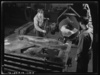 Boeing aircraft plant, Seattle, Washington. Production of B-17 (Flying Fortress) bombing planes. Pouring a lead die to be used in the production of parts for B-17 (Flying Fortress) bombers