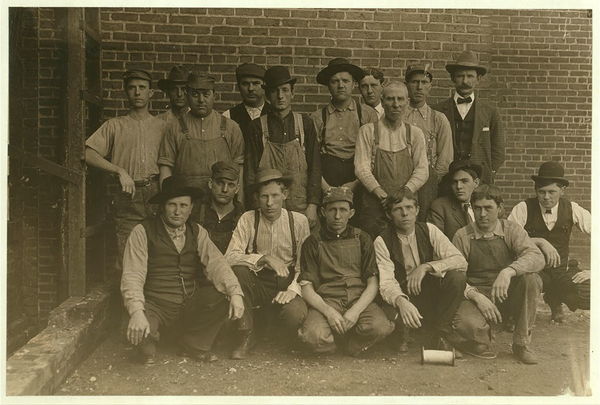 Group at the Bibb Mill No. 1, Macon Ga. This is one of the mills of the Bibb Mfg. Co., See label on photo 538 for profits made. Jan. 19,1909. Location: Macon, Georgia.