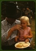 Homesteader feeding his daughter at the Pie Town, New Mexico Fair free barbeque