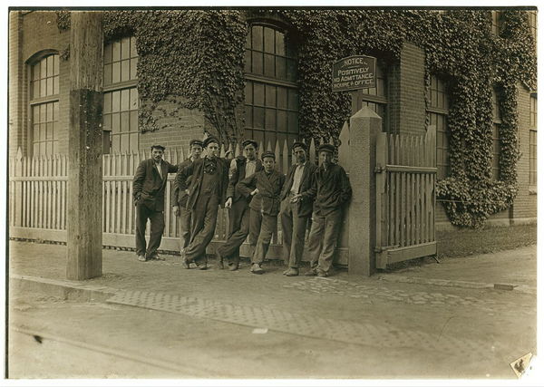 These boys and few more (not many) smaller ones work in Lorraine Mfg. Co., Westerly, R.I. Location: Westerly, Rhode Island.