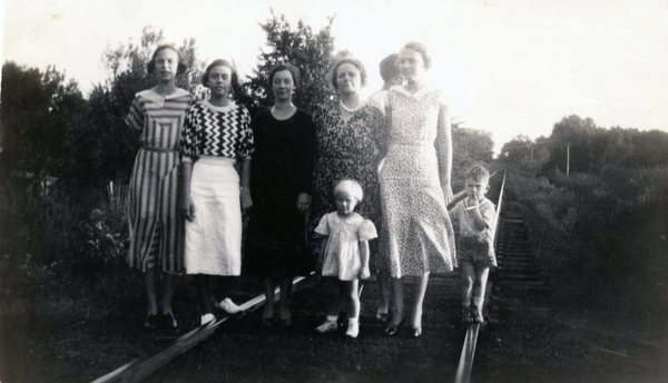 This looks to be a picture of the usual Moffett and Gibbs clan with Mrs. McGinty, the wife of the Sand Spring Church pastor.