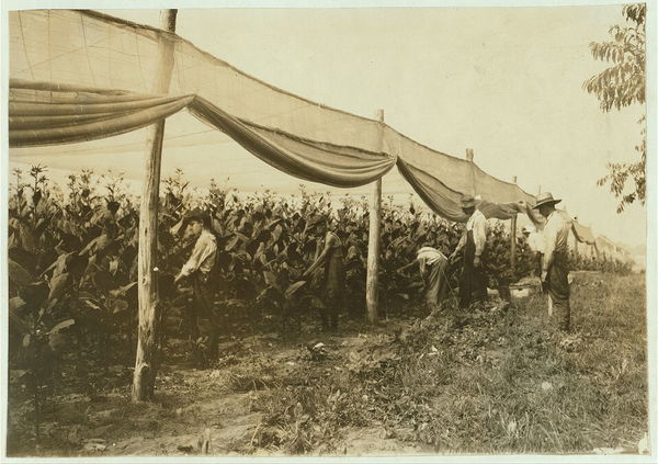 Girl "passing leaves" to "stringer." Both 14 years. Hackett Farm. Location: Buckland, Connecticut