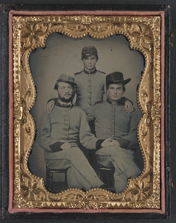 Three unidentified soldiers in Confederate artillerymen uniforms