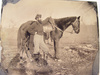 John E. Cummins of the 50th, 99th, and 185th Ohio Infantry regiments in Union uniform next to a horse