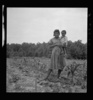 Wife and child of young sharecropper in cornfield beside house. Hillside Farm, Person County, North Carolina