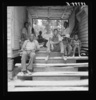 Zollie Lyon, sharecropper, home from the field for dinner at noontime, with his wife and part of his family. Note dog run. Wake County, North Carolina