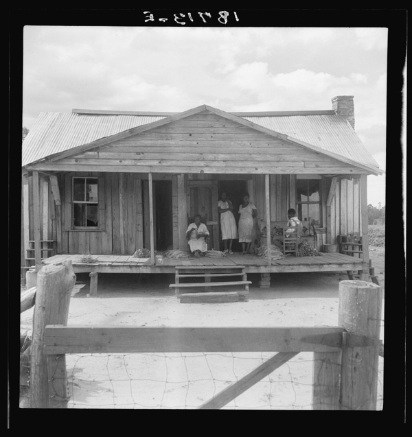 Near Douglas, Georgia. Sharecroppers grade the cured leaves on the porches and sort them to go to the tobacco auction