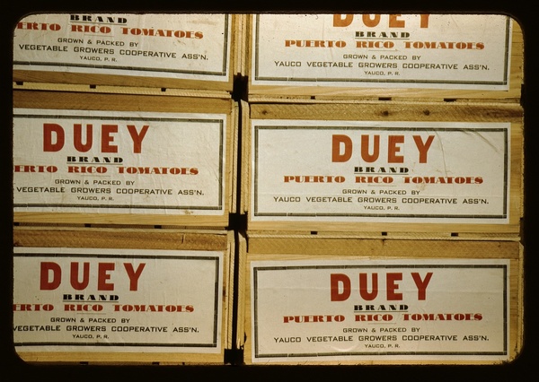 Tomato crates at the Yauco cooperative tomato growers' association, Puerto Rico