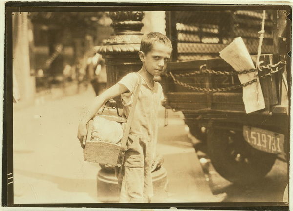 Tommie, very young shiner, Canal Street, New York City. Some of these youngsters do not know their ages nor how much they earn. July 25, 1924. Location: New York, New York (State)