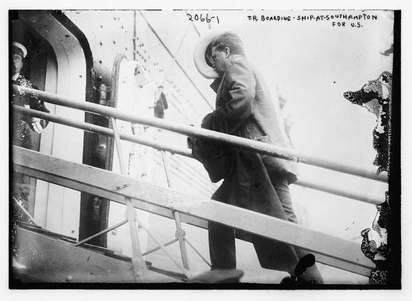 T.R. Theodore Roosevelt boarding ship at Southampton for the US