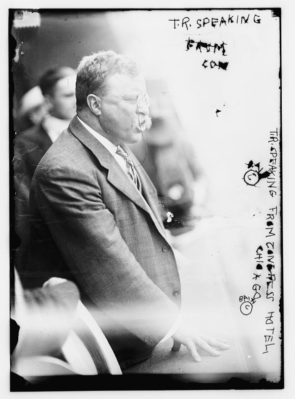 T.R. Theodore Roosevelt speaking from Congress Hotel, Chicago, Ill.