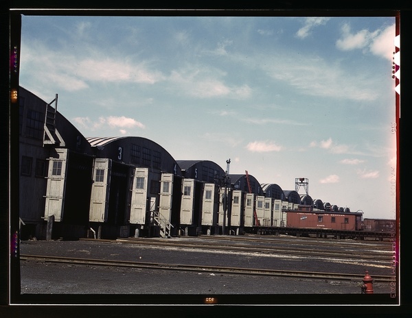 Tracks leading into the freight house at Proviso yard. This is said to be the largest covered freight house in the world. C&NWRR, Chicago, Ill.