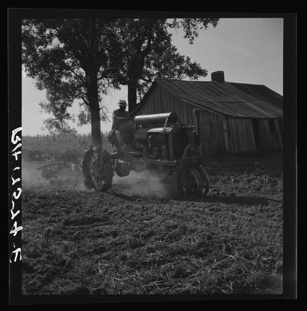 Tractor and driver on the Aldridge Plantation. Mississippi