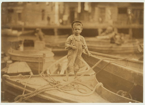 Truant hanging around boats in the harbor during school hours. Location: Boston, Massachusetts.