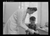 Farm Security Administration (FSA) camp at Farmersville, Tulare County for migratory agricultural workers. Migratory boys come to clinic for attention fo the resident nurse of the Agricultural Workers' Health and Medical Association (FSA)