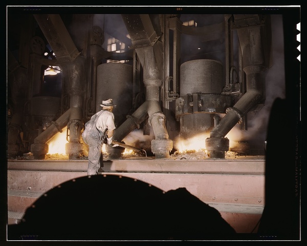 A large electric phosphate smelting furnace used in the making of elemental phosphorus in a TVA chemical plant in the Muscle Shoals area, Alabama