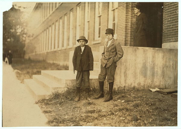 Two boys working in Friedman Shelby Shoe Company 6:30 A.M. (See photo #1718 for names of boys). Location: Mexico, Missouri.