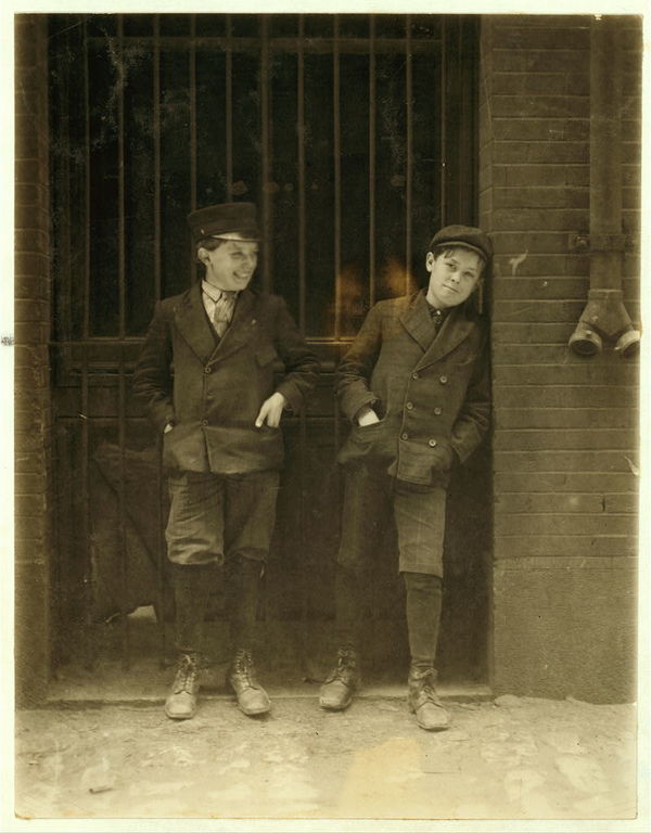 Two boys working in Inland Type Foundry 12th & Locust Sts. Work 9 to 10 hours a day. Noon. Location: St. Louis, Missouri.