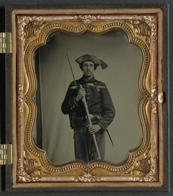 Corporal John I. Guigher of Co. I, 56th Pennsylvania Infantry Regiment in uniform with book