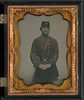 Unidentified soldier in Confederate captain's uniform, red sash, and kepi marked V.V.