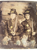 Two unidentified soldiers in Union uniforms and forage caps with saber and musket