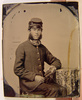 Unidentified soldier in Union frock coat and forage cap holding book