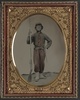Unidentified soldier in Confederate infantry uniform with musket and Bowie knife