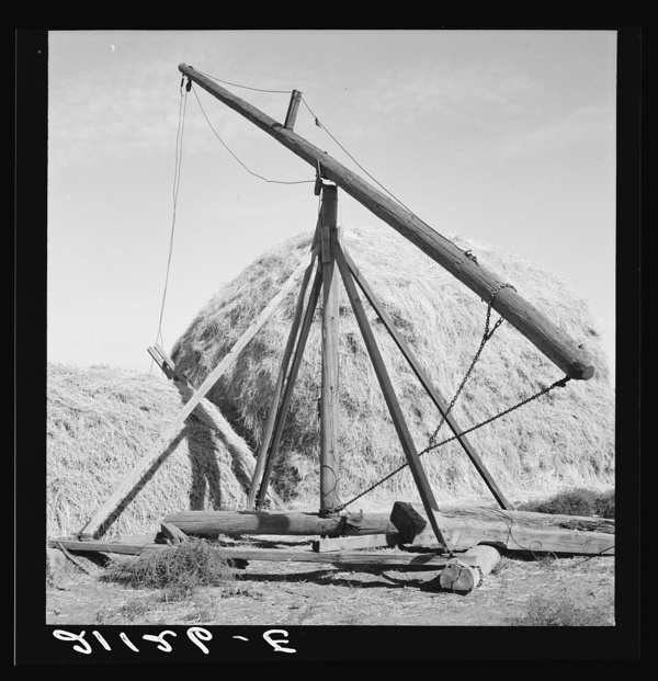 Type of hay derrick characteristic of Oregon landscape. Irrigon, Morrow County, Oregon