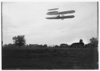 Front view of flight 41, Orville flying to the left at a height of about 60 feet; Huffman Prairie, Dayton, Ohio