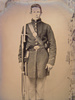 Unidentified soldier in Union frock coat with musket and attached sword bayonet
