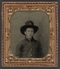 Unidentified soldier in Union corporal's uniform holding Company B, 15th New Hampshire Volunteers kepi