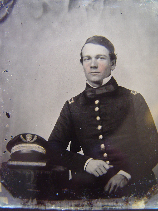 Unidentified sailor in Union master's uniform with Navy officer's hat