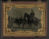 Private Davis J. Shepard of 11th New York Light Artillery Battery in uniform on horseback next to cannon
