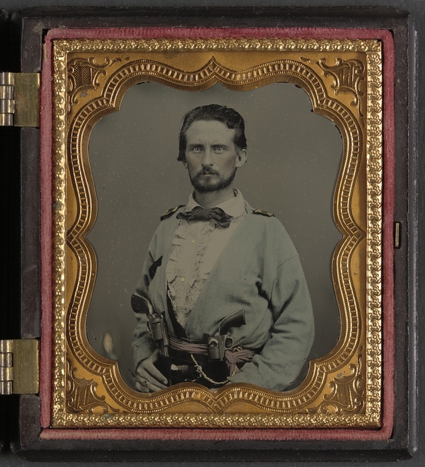 Unidentified soldier from Kentucky in Confederate uniform with two revolvers