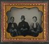 Unidentified soldier in infantry uniform sitting between two women, probably relatives