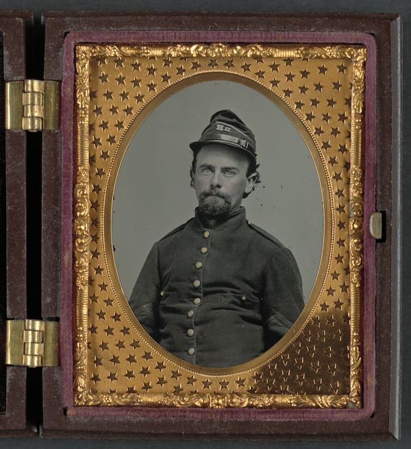 Unidentified soldier in Confederate uniform and Richmond Howitzers artillery unit hat