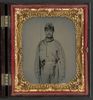 James W. Millner of Company K, 38th Virginia Infantry Regiment with bayoneted musket, holstered pistol, and knife