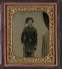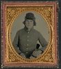 Unidentified soldier in Union uniform, with smoking fez and U.S. buckle with bayoneted musket