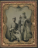 Two unidentified soldiers in Confederate uniforms with sword, bayoneted musket, and knapsack