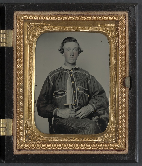 Unidentified soldier in Confederate uniform with Bowie knife