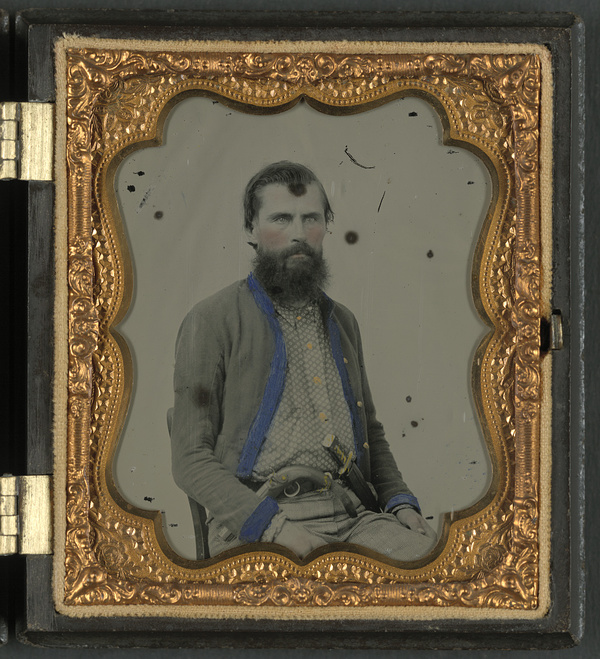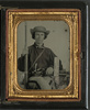 Unidentified soldier in Confederate uniform with pistol and Bowie knife