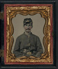 Unidentified soldier in Union sack coat and Company C forage cap with Colt revolver
