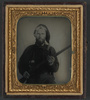 Unidentified soldier in Confederate uniform and Corsican cap with flintlock conversion musket
