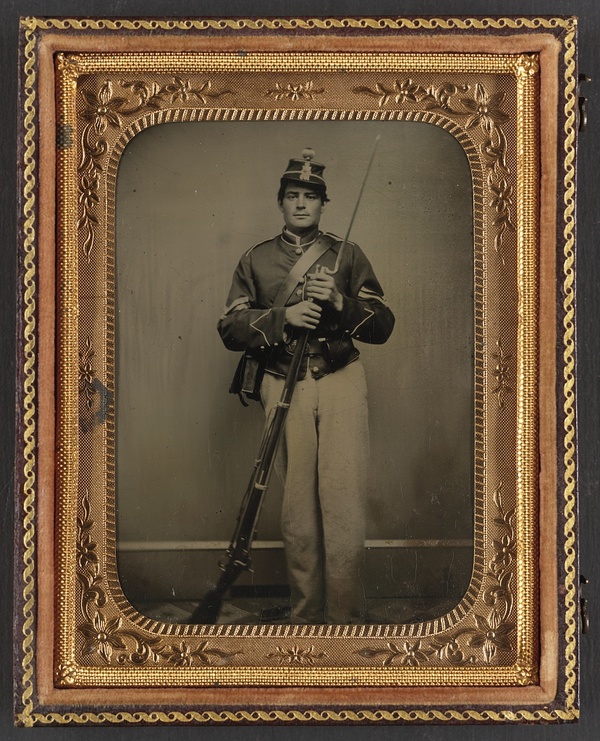 Unidentified soldier in New York state enlistedman's uniform with bayoneted musket