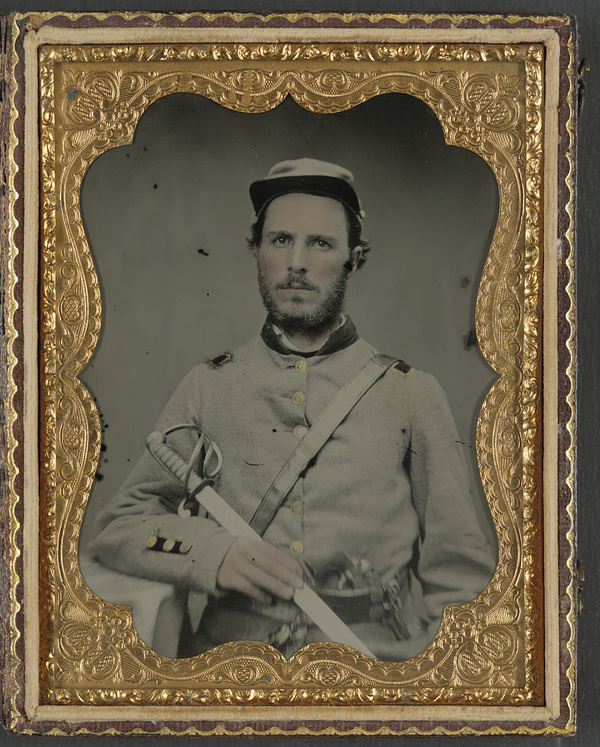 Unidentified soldier in North Carolina uniform with sword and revolver
