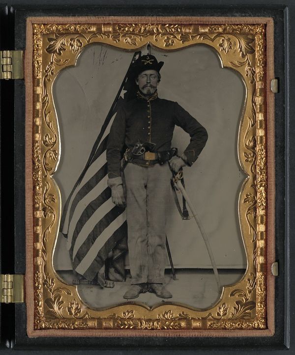 Unidentified soldier in Union cavalry uniform with Colt Dragoon revolver and sword