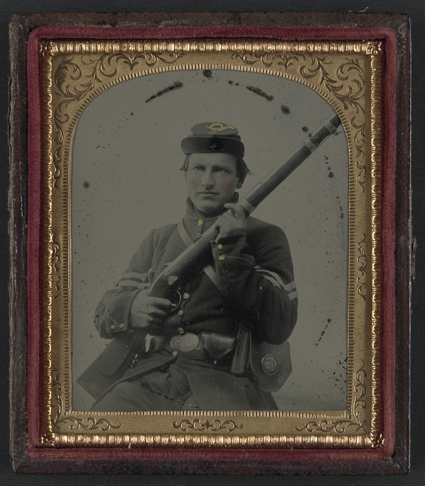 Unidentified soldier in Union corporal's uniform, infantry kepi, and U.S. belt plate with musket and cartridge box