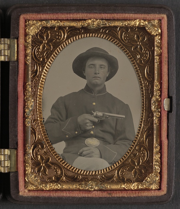 Unidentified soldier in Union enlistedman's uniform and U.S. beltplate with Marston revolver