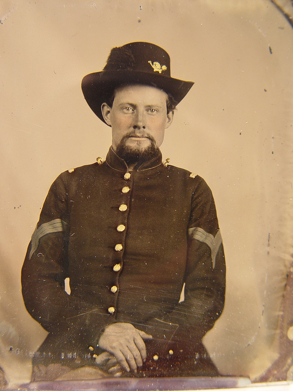 Unidentified soldier in Union sergeant uniform with Hardee hat with infantry insignia and plume